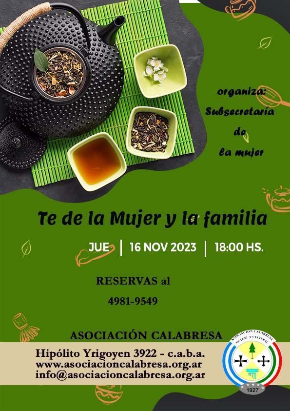 En el marco de la 68° Settimana di Calabria, la Subsecretaria de la Mujer de la Asociación Calabresa de Buenos Aires realizará el ya tradicional Té de la Mujer y la Familia.