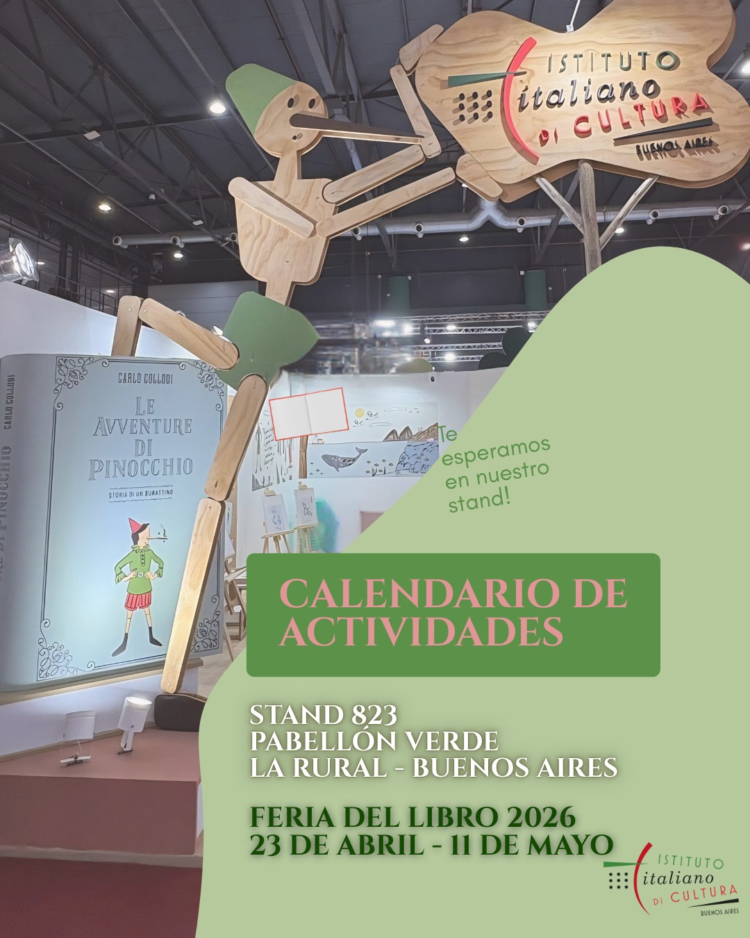 Cada año hay una temática principal. En este 2026, el gran protagonista del stand es Pinocho, cuya novela fue la elegida con motivo del bicentenario del nacimiento de su autor, el italiano Carlo Collodi. Al igual que la Feria, las propuestas del IIC comenzaron el jueves 23 de abril, en el mismo Día Internacional del Libro. Luego, el viernes 24 de abril se celebró el Dia de Italia con la presentación de Andrea Bajani, flamante ganador del Premio Strega 2025, en conversación con la escritora Leila Guerriero. Más allá de la gran variedad de actividades que se desarrollarán en el stand, los visitantes podrán obtener información sobre los cursos del Instituto, se podrán realizar tests de nivel y acceder a condiciones promocionales para la inscripción al Club de Lectura.